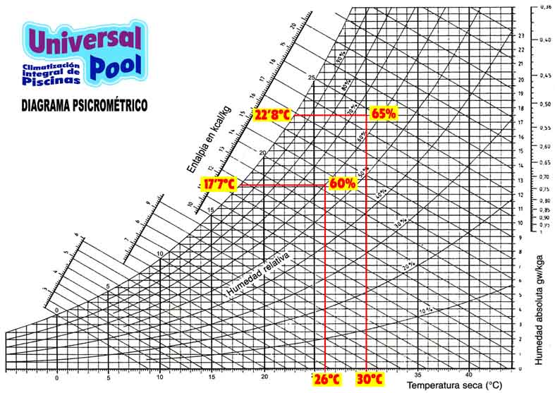 ¿QUE ES UN DESHUMIDIFICADOR? ¿QUE ES UNA UNIDAD DESHUMIDIFICADORA? COMO QUITAR HUMEDAD EN LA PISCINA Si sobre cualquier superficie que esté por debajo de la temperatura del “punto de rocío” se produce condensación del agua que contiene el aire en contacto con ella, es obvio que para deshumidificar, la solución pasa por crear de forma artificial estas superficies frías y hacer pasar por ellas el aire del recinto de la piscina. Esto es lo que hace un deshumidificador, crear de forma artificial esa superficie fría. Haciendo uso de un circuito frigorífico podemos conseguir quitar la humedad del ambiente de la piscina cubierta y la unidad capaz de hacerlo le llamamos deshumidificador. Los deshumidificadores son bombas de calor de ciclo no reversible en las que se aprovechan las dos partes del circuito frigorífico, tanto el de alta como el de baja presión. En la batería evaporadora se consigue eliminar parte del agua que lleva el aire por efecto de la condensación sobre los tubos y aletas frías de la batería al estar su temperatura por debajo del punto de rocío del aire. Se consigue por tanto la deshumidificación del aire húmedo procedente del local de la piscina. El aire que sale de la batería evaporadora (fría), se hace pasar por la batería condensadora (caliente), consiguiendo que cuando se impulsa al local, salga seco y caliente de forma que siempre estaremos aportando al recinto de la piscina el calor correspondiente a la energía que ha consumido el compresor. Es una maquina con doble efecto en la que se aprovecha toda la energía que se consume, de forma que, la usada para deshumidificar es también aprovechada para calentar el ambiente de la piscina. Tan solo a título orientativo, vamos a indicar la unidad deshumidificadora, el deshumidificador que podría ser dispuesto en una piscina cubierta para mantener unas condiciones de confort óptimo estándar de ambiente interior a temperatura seca de 27ºC y humedad del 66% H.R. No son vinculantes estas cifras puesto que, están consideradas para unas determinadas condiciones de proyecto que quizás no se parezcan a las particulares que el usuario tiene o desea. En el cálculo del deshumidificador, siempre hacemos referencia a la superficie de lámina de agua del vaso de la piscina, puesto que proporcional a ella se cuantifican las otras fuentes productoras de vapor de agua en el recinto cubierto de la piscina que son: 1. Playa mojada alrededor del vaso por el chapoteo y arrastre en bañador y cuerpo cuando los bañistas salen del agua. 2. Superficie del cuerpo de cada bañista mojado con agua, que se considera 1'6 m2 en mujeres y 1'8 m2 en hombres, promedio 1'7 m2. 3. La respiración de los bañistas que incrementa el contenido en agua del ambiente a razón de 100 gr/persona y hora. TABLA DE SELECCIÓN ORIENTATIVA DE DESHUMIDIFICADORES USO DOMÉSTICO-RESIDENCIAL. ¿Qué modelo seleccionar?. Es suya la decisión de la forma constructiva, determinada por las necesidades particulares de su piscina, del espacio disponible y de su gusto particular. Una vez decidida la gama, tiene que seleccionar el modelo y para ello hemos confeccionado esta tabla en la que se indica la capacidad del modelo y para que superficie máxima de lámina de agua es aconsejable. El vapor de agua producido en una piscina con lámina de agua de 9x4m = 36m2, puede ser eliminado por uno de los siguientes deshumidificadores: un deshumidificador DAP-07-T (hasta 37 m2); un DHI-03-T (hata 37 m2); o bien y aunque está en el límite con un DAP-07-H ó DAP-07-V (hasta 34 m2). |